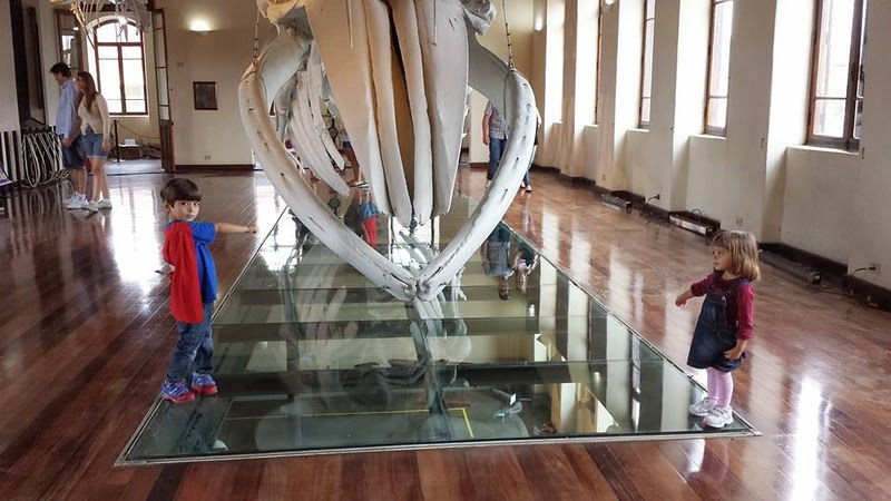 Balaenoptera physalus — Fósseis de uma baleia gigante de 23 metros de comprimento, pesando sete toneladas e com 193 ossos. A baleia-fin encalhou na praia de Peruíbe durante a segunda guerra mundial, em agosto de 1941. Quando chegou ao museu, os museólogos tiverem de derrubar três salas para caber o fóssil do mamífero.